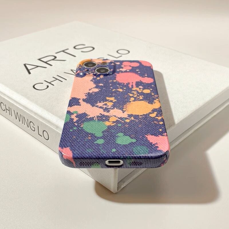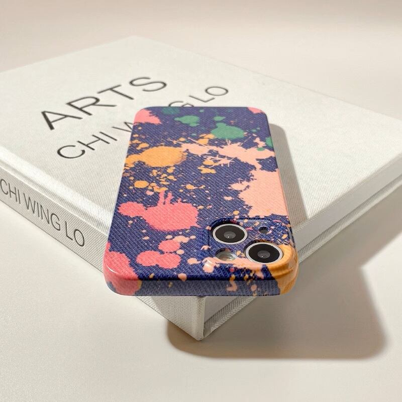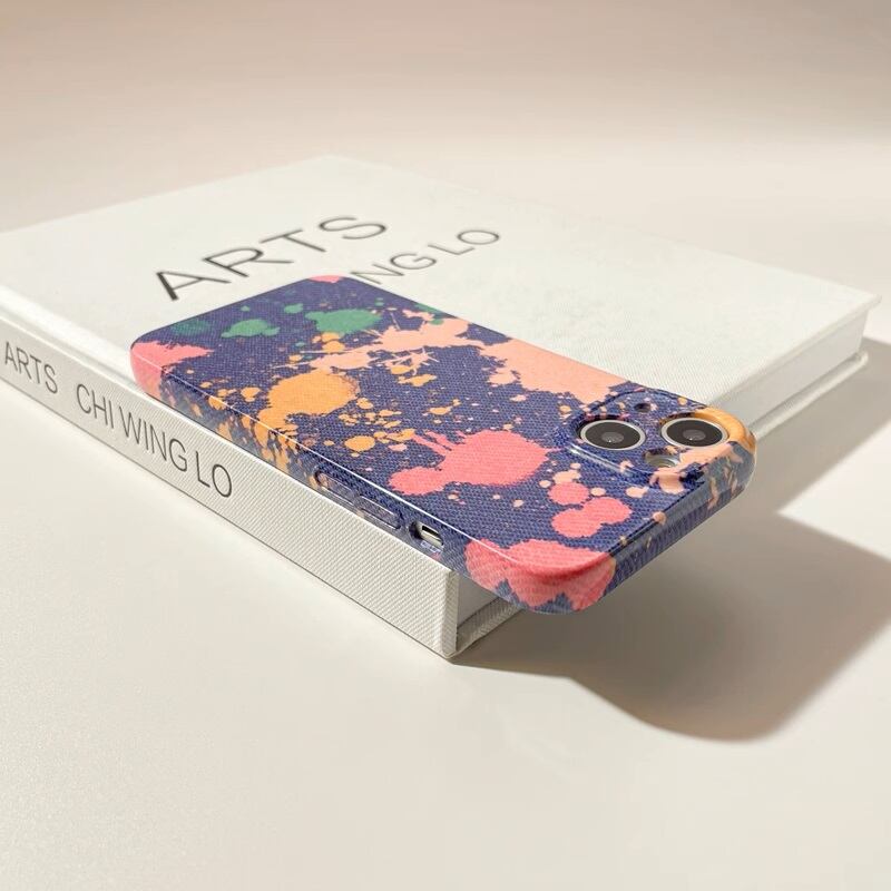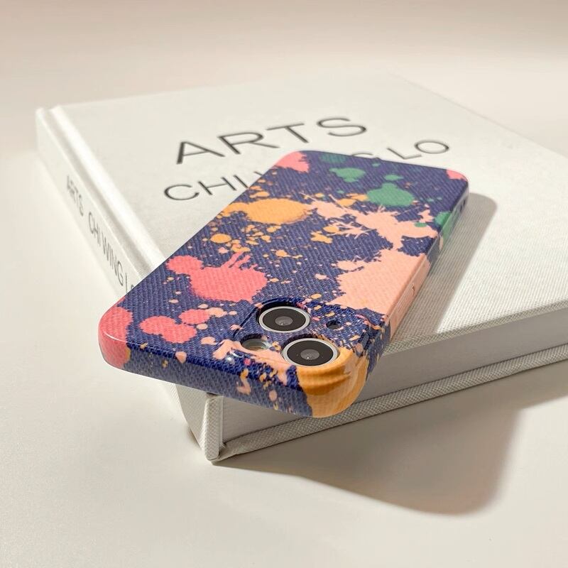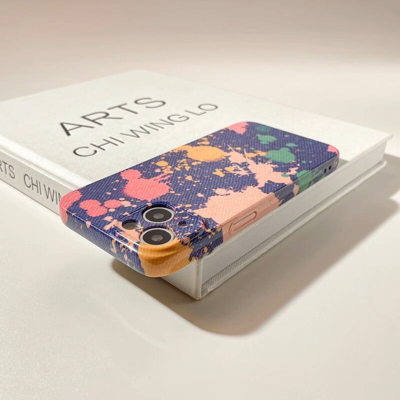 ドリッピングペイントのiPhoneケースです。ネイビーにピンクやオレンジ、グリーンなどのインクをドリップしたようなアーティスティックなデザインです。頑丈なケースが大切なiPhoneを傷や破損から守ります。見るたびに気分が上がる、スタイリッシュなデザインです。