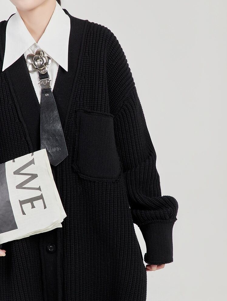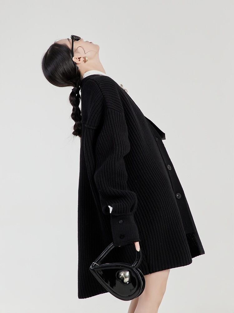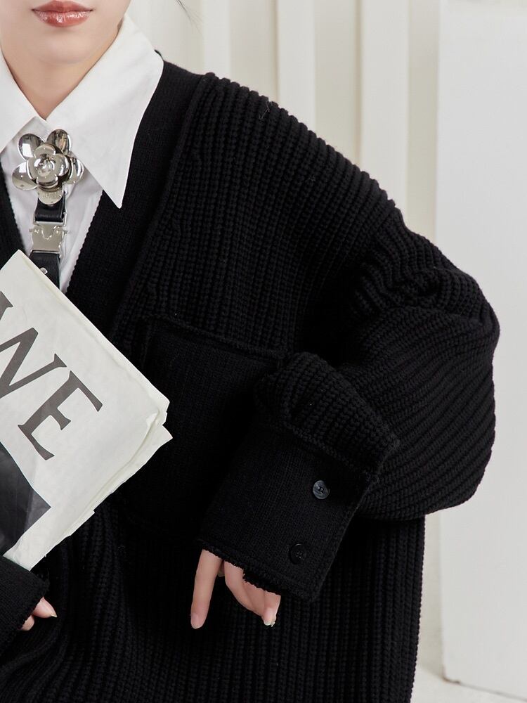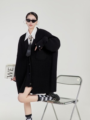ビッグシルエット リブニットカーディガン ブラック NI00225