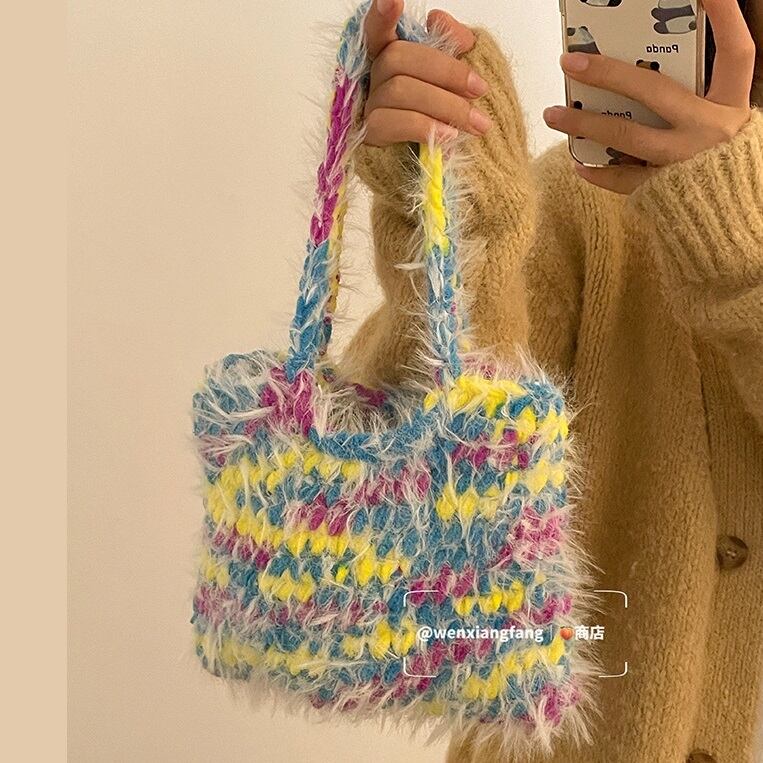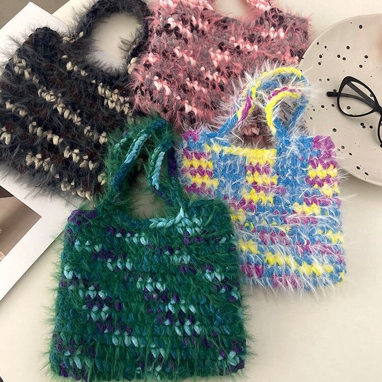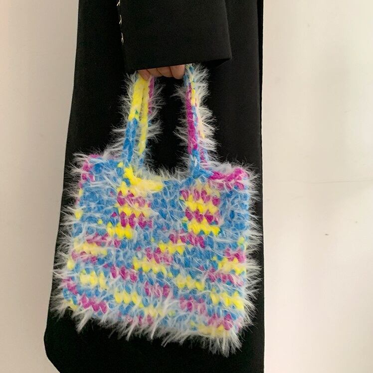 ミックスカラーのモヘアがフェミニンなニットバッグ・トートバッグです。モヘアならではの質感やミックスカラーがポイントです。秋冬のコーデのアクセントにおすすめです。それぞれ雰囲気のちがう、ピンク、グリーン、ブラック、ブルー、ティールの5色展開です。