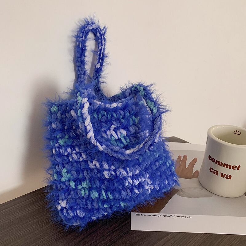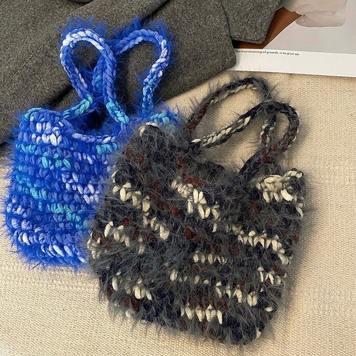 モヘアミックス ニットバッグ・トートバッグ ブルー BA00419