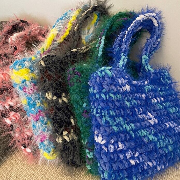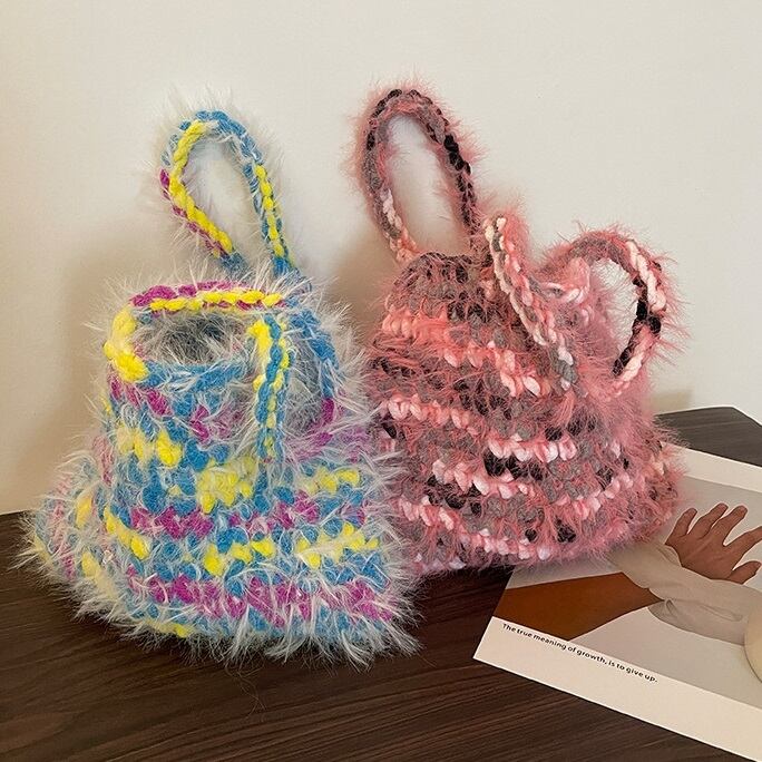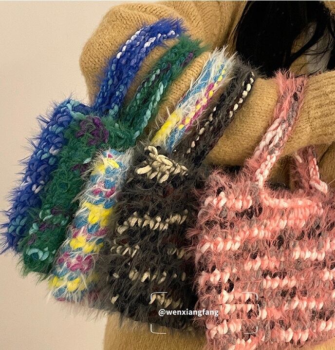 ミックスカラーのモヘアがフェミニンなニットバッグ・トートバッグです。モヘアならではの質感やミックスカラーがポイントです。秋冬のコーデのアクセントにおすすめです。それぞれ雰囲気のちがう、ピンク、グリーン、ブラック、ブルー、ティールの5色展開です。