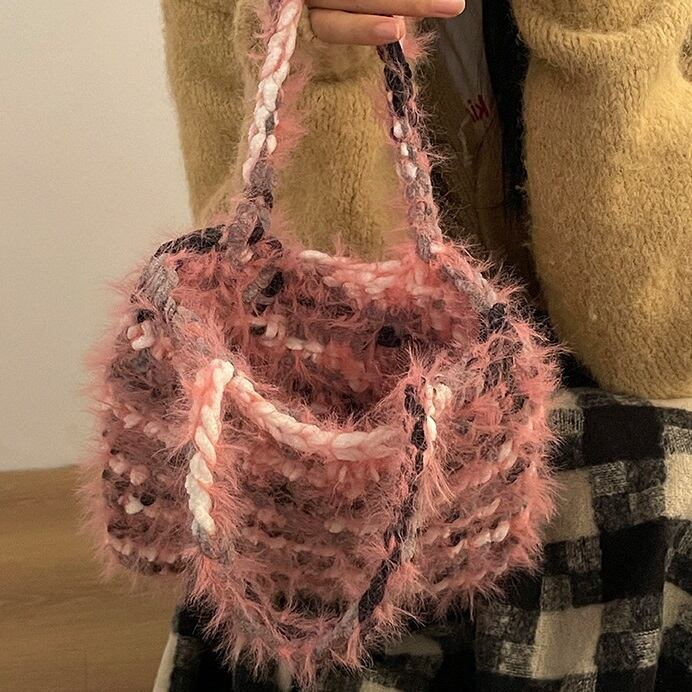 モヘアミックス ニットバッグ・トートバッグ ピンク BA00416
