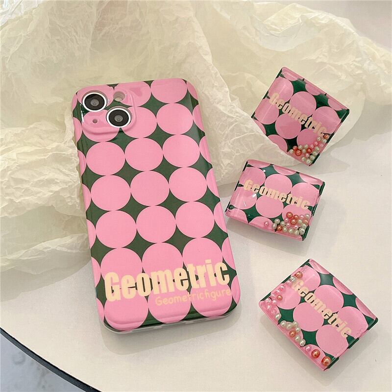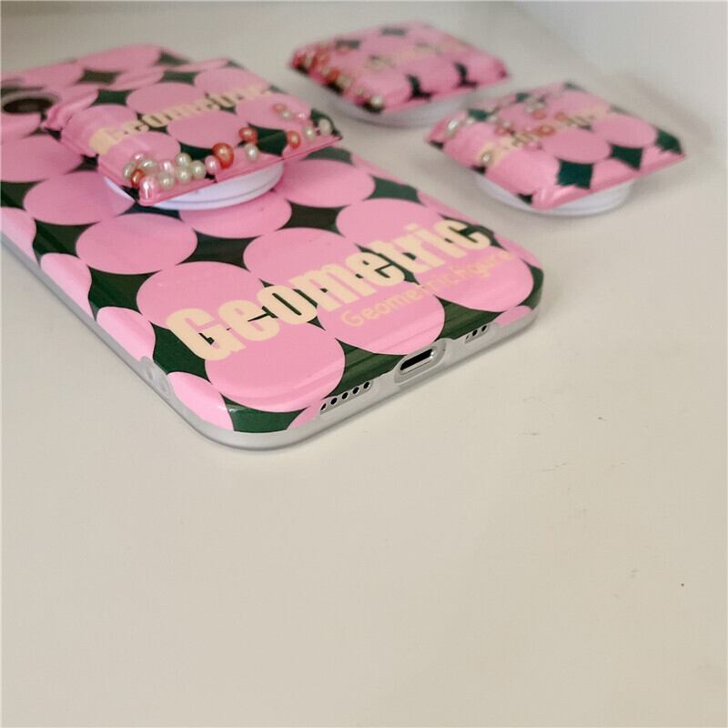 ジオメトリックプリント iPhoneケース(スタンドパーツ3個付属)ピンク/グリーン TA00031