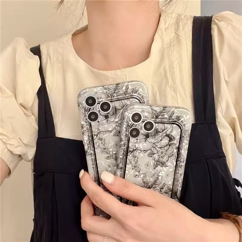 アンティーク調のボタニカルプリントがフェミニンなiPhoneケースです。螺鈿のような繊細なグリッターがエレガントな印象です。頑丈なハードシェルのケースが大切なiPhoneを傷や破損から守ります。
