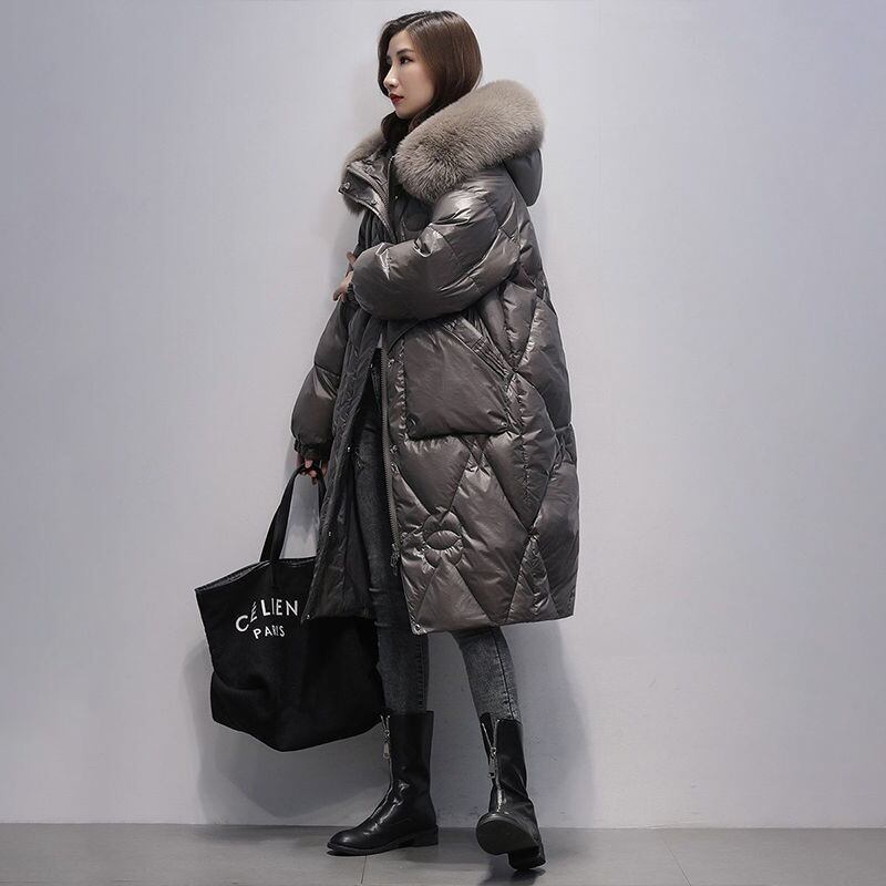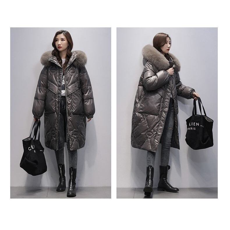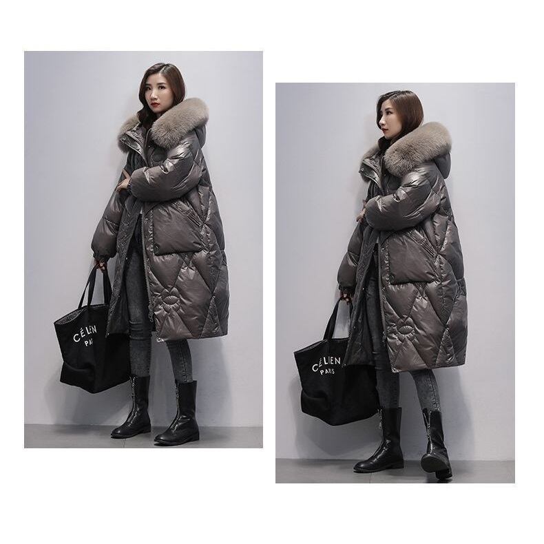 エコファーカラー付き ロングダウンジャケット シルバーグレー CT00068