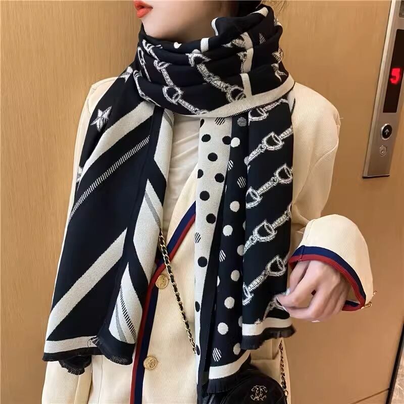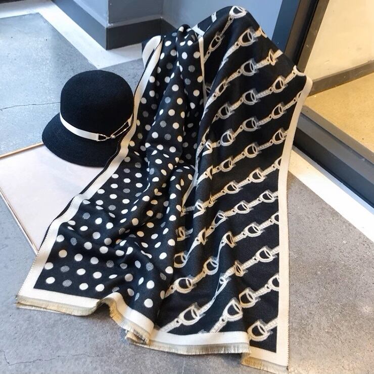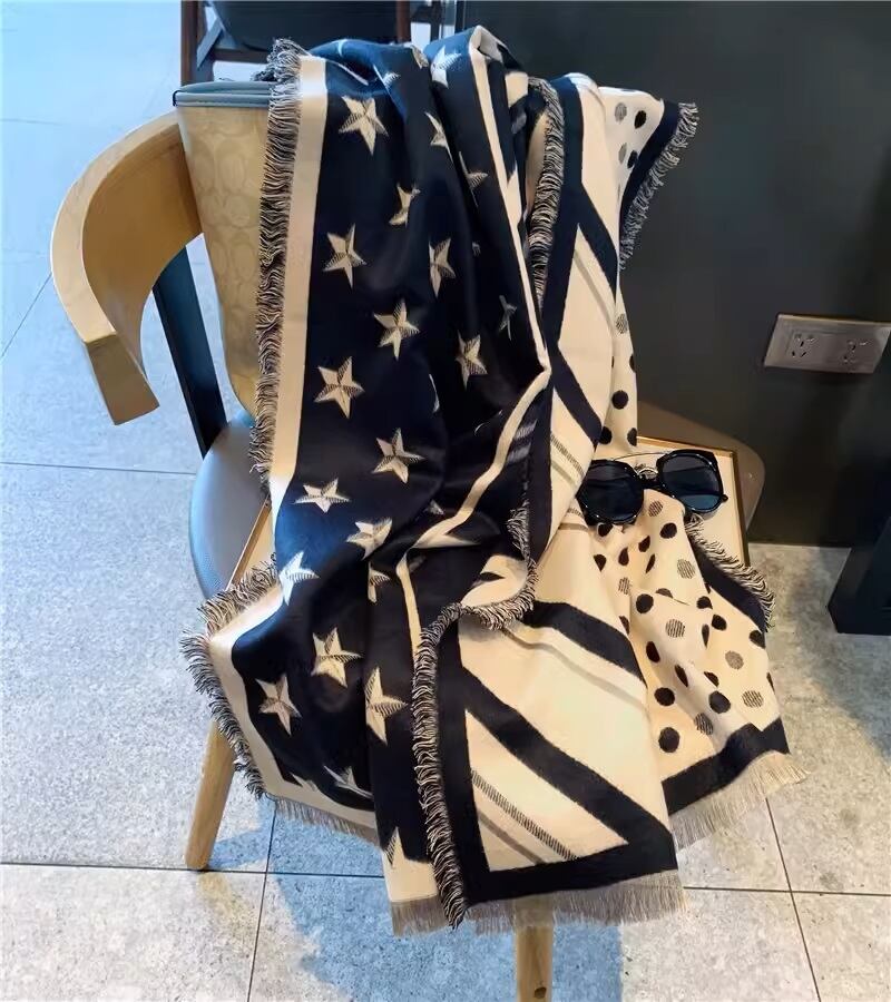 4パターン(スター/ホースビット/ドット/ストライプ)ワイドマフラー・ストール ブラック WT00018