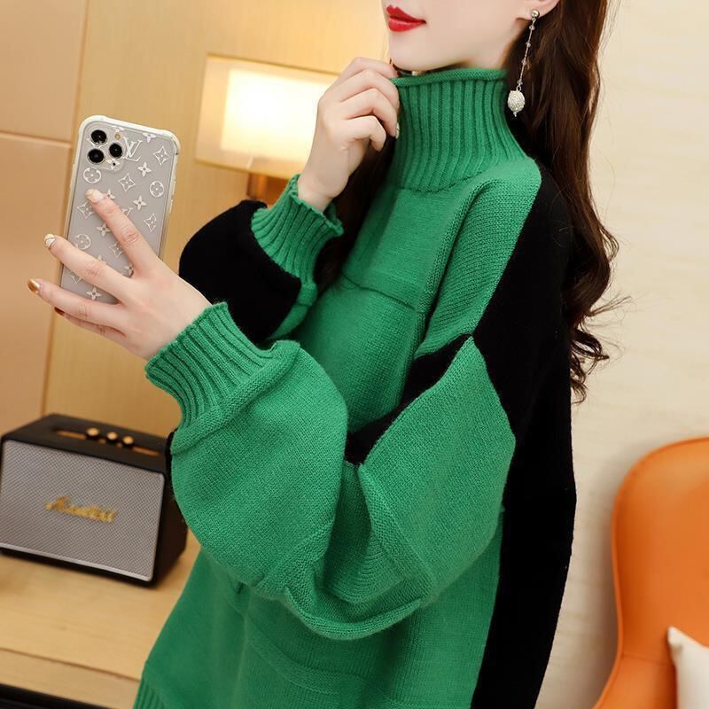 バイカラーブロッキング ニットセーター グリーン/ブラック NI00186