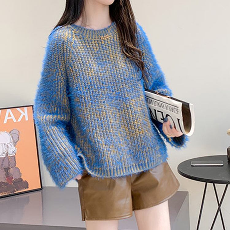 バイカラー クルーニットセーター ブルー NI00143