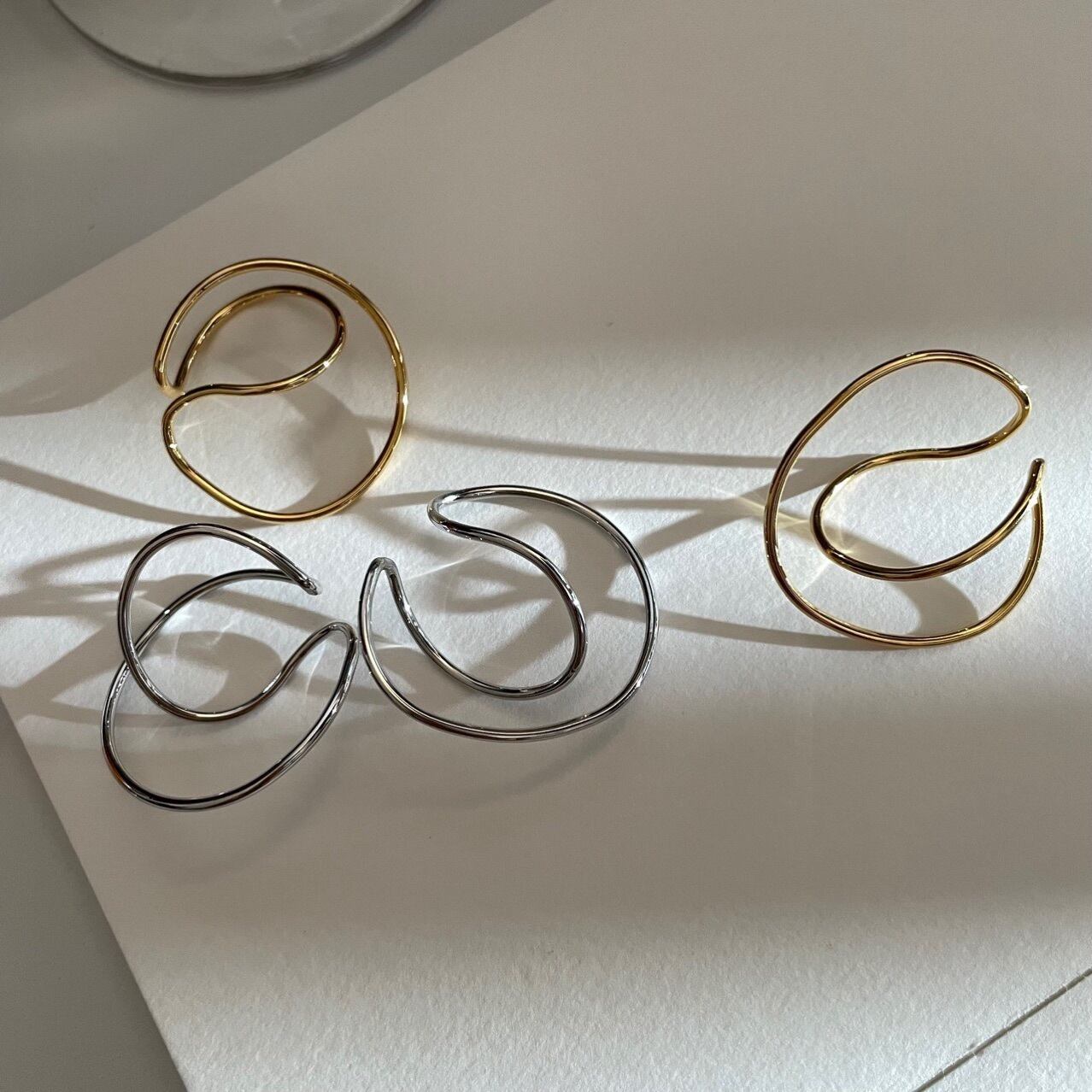 2つのフープピアスがクロスしているように見えるイヤーカフ(イヤークリップ)です。シンプルながらインパクトのあるデザインがコーディネートを引き立てます。耳に掛けるタイプのイヤーカフ・イヤークリップタイプですので、ピアスホールのない方でもお使いいただけます。