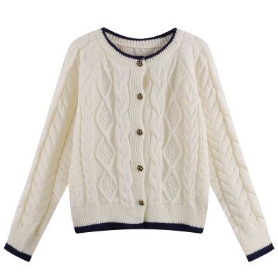 バイカラーがスタイリッシュなニットカーディガンです。衿、裾、袖口に入ったブラックのライニングとキュートなボタンで、クラシックなケーブル編みのニットがフレッシュな印象に!遊び心のある、ハイセンスなニットカーディガンです。3シーズン、幅広いスタイリングが楽しめます。