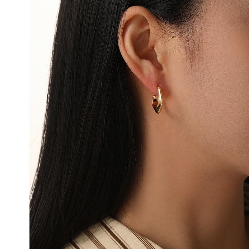 アブストラクトデザインのフープピアスです。普通のフープピアスよりもインパクトのあるデザインで、ハイセンスでフレッシュなイメージに仕上がります。シンプルなニットコーデから、ドレススタイルまで、幅広いシーンにお使いいただけます。