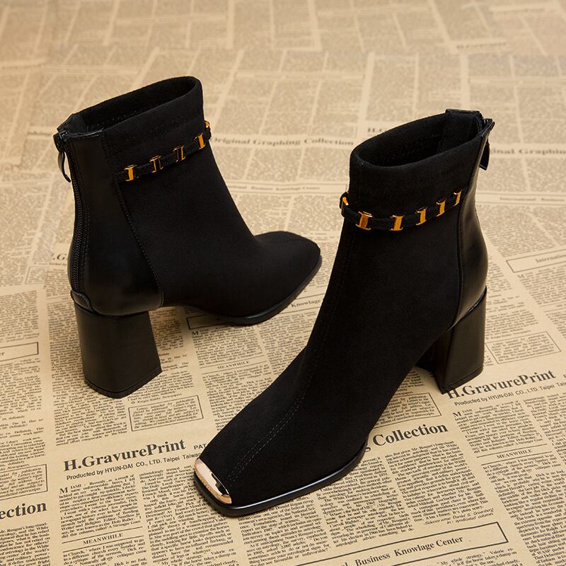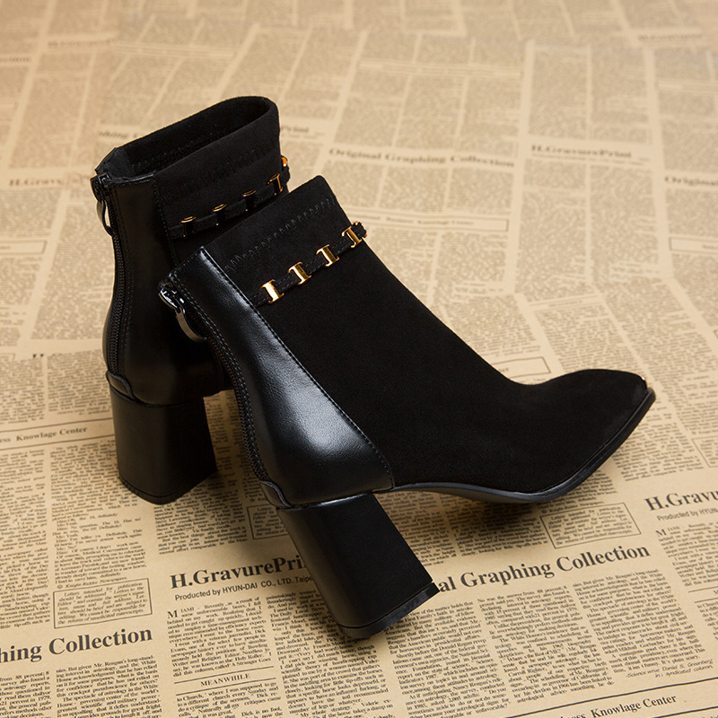 メタリックトゥ アンクルストラップ ショートブーツ ブラック BU00031