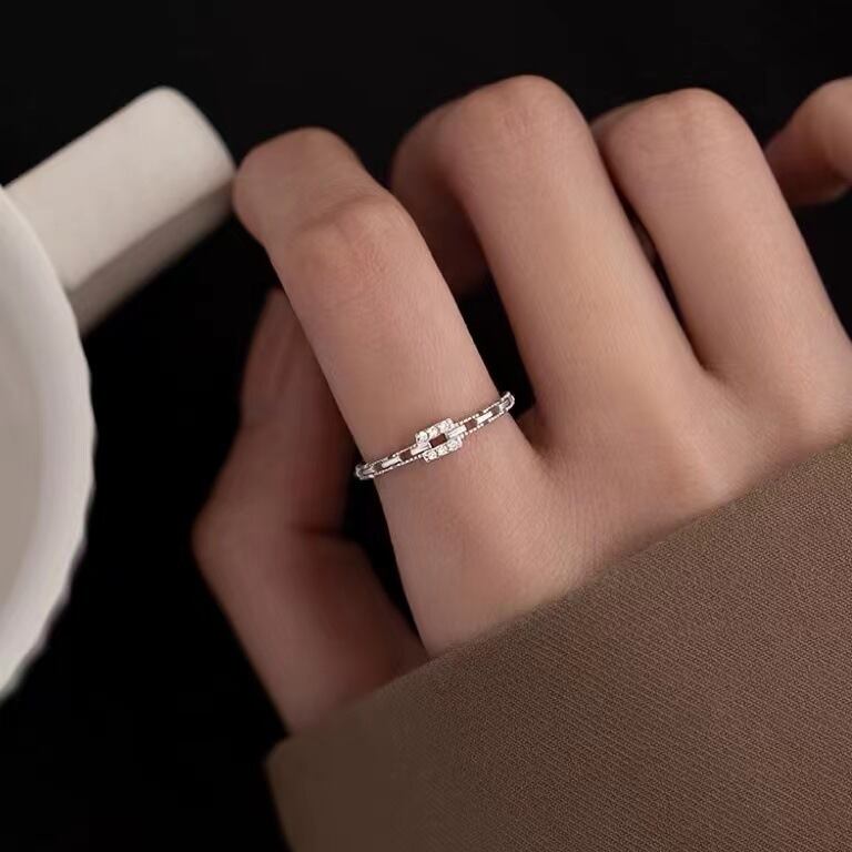 パヴェクリスタル スクエアチェーンリング シルバー RI00057