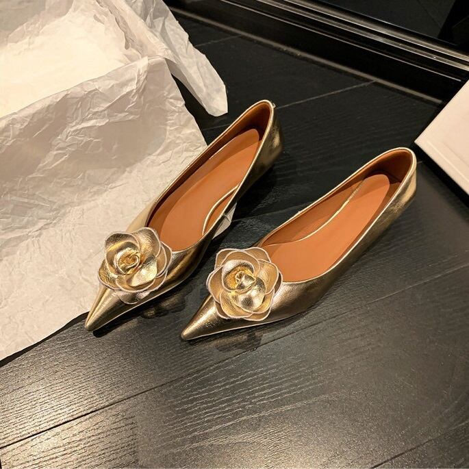 カメリアコサージュ ヒールパンプス ゴールド SH00162