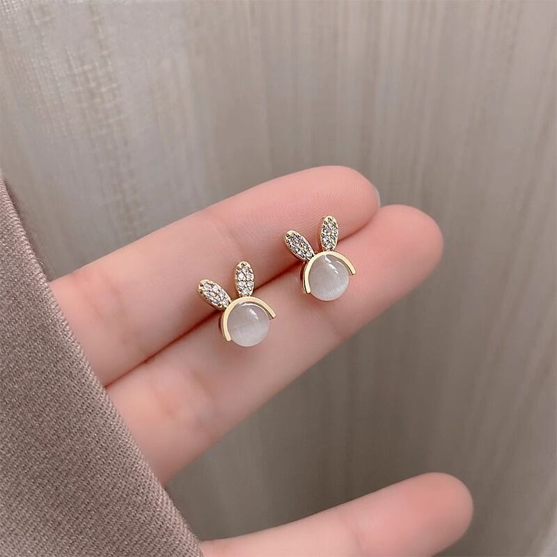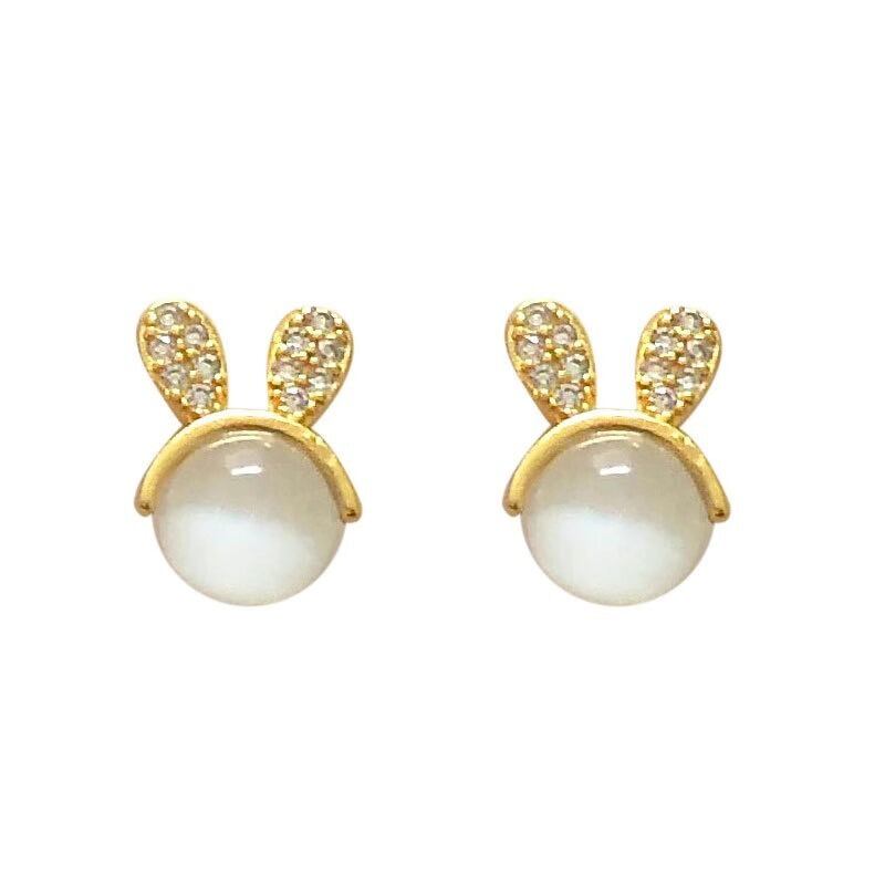 ラビットモチーフ キャッツアイ スタッズピアス ゴールド PR00106