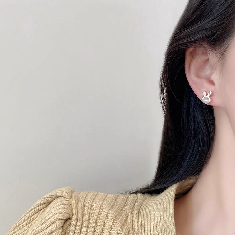 キュートなウサギの顔をモチーフにしたスタッズピアスです。可愛いフォルムとはうらはらに、美しいキャッツアイストーン(猫目石)とパヴェクリスタル、ラグジュアリーな素材をぜいたくに使用した高級感のあるデザインです。オトナかわいい、遊び心にあふれるピアスです。コーデの外しのアクセントにおすすめです。