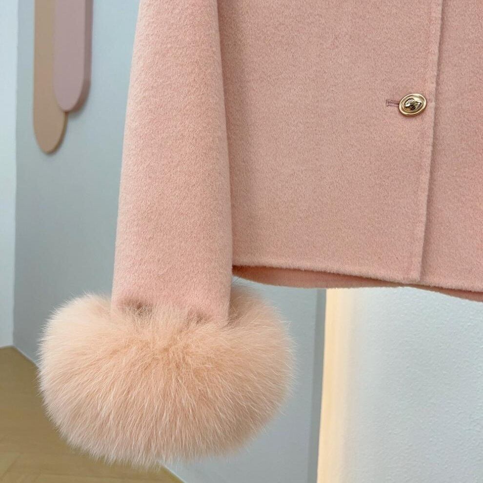 ファーカフ+ボウタイ スタンドカラージャケット ピンクベージュ JK00075