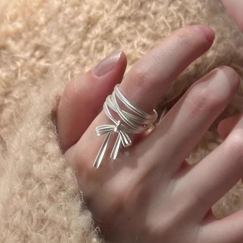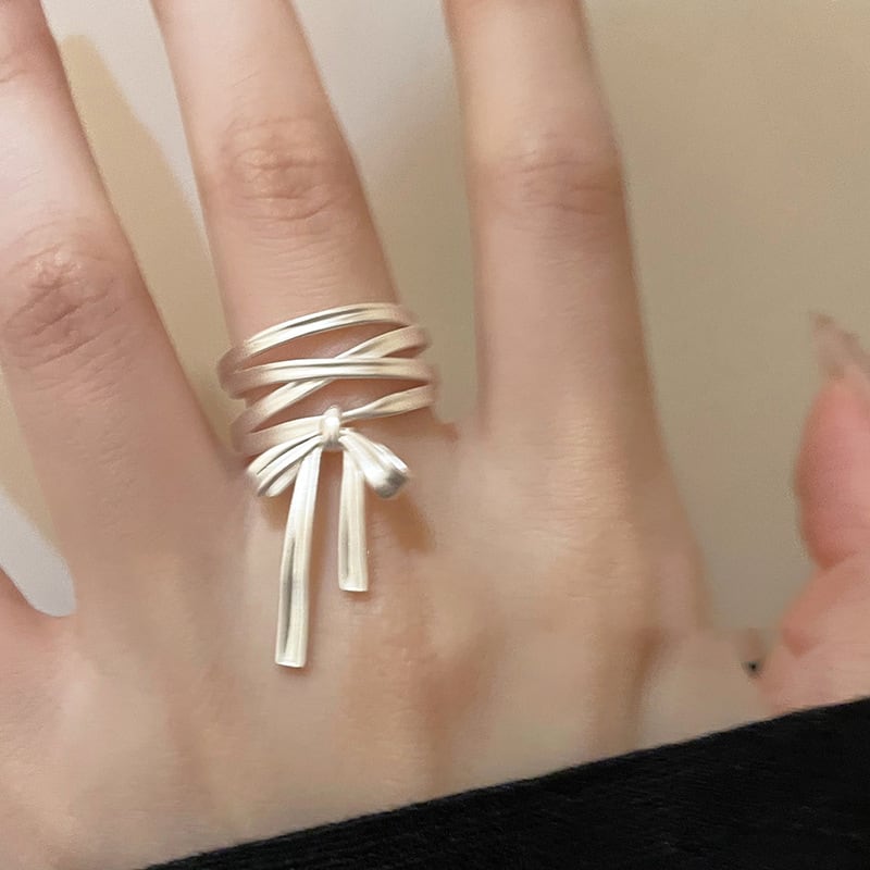 【国内即納】レースアップリボン オープンリング マットプラチナ RI00058