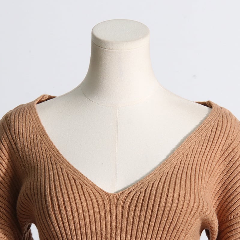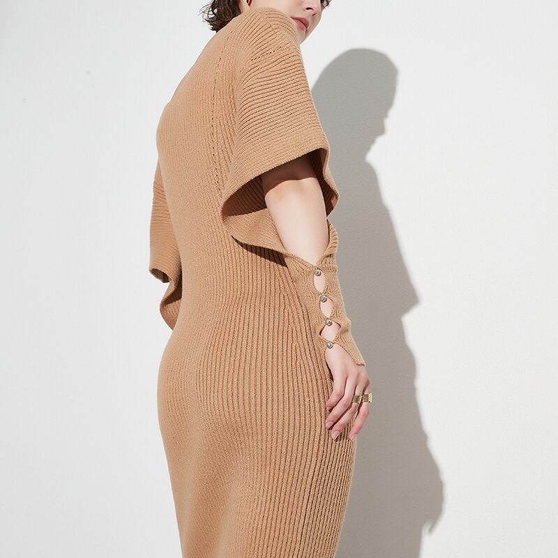 カットアウトスリーブ リブニットワンピース ベージュ OP00175