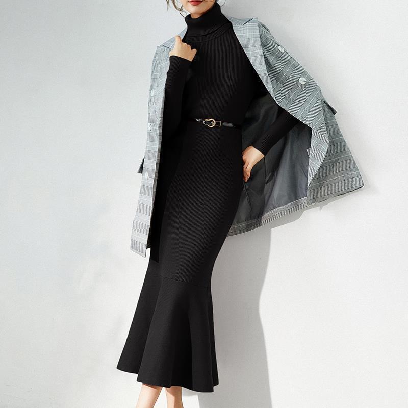 マーメイドライン タートルネック ニットワンピース ブラック OP00182