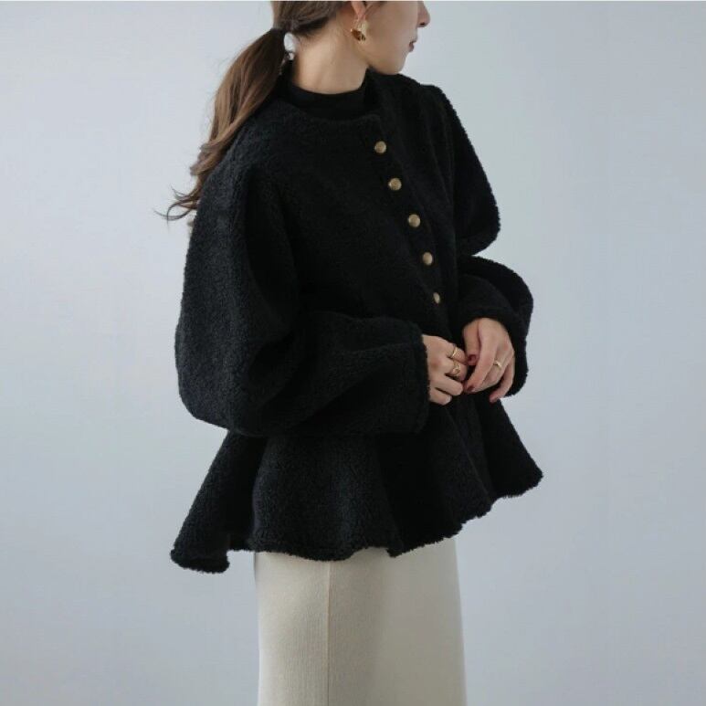 ノーカラー ペプラムボアジャケット ブラック CT00086