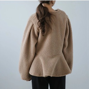 ボア素材がフェミニンなペプラムジャケットです。ペプラムやノーカラー、ボア素材でフェミニンなスタイリングが楽しめます。マットゴールドのボタンもアクセントになっています。防寒面も◎のボア素材で、寒い日も温かくオシャレが楽しめます。