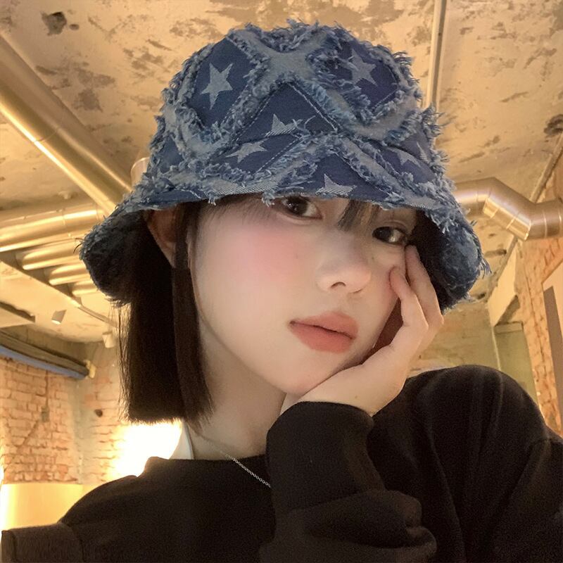 スターモチーフ シャギーアレンジ デニムバケットハット インディゴブルー BO00062