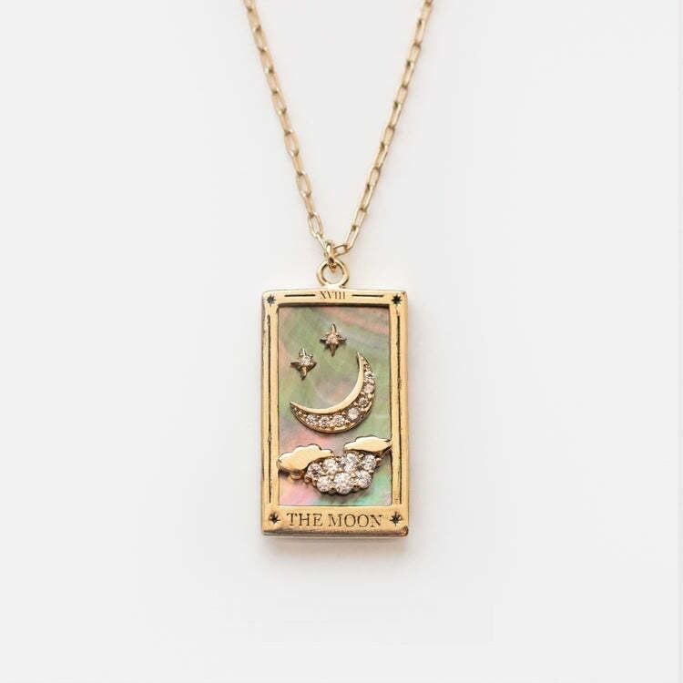 タロットカードをモチーフにしたチャームネックレスです。アーティスティックなタロットカードの世界観をジルコニアなどのストーンを使ってアレンジした、ユニークでハイセンスなデザインです。好きなカードをお守り代わりに身に着けるのもオススメです。コーディネートのキュートなアクセントにおすすめです。