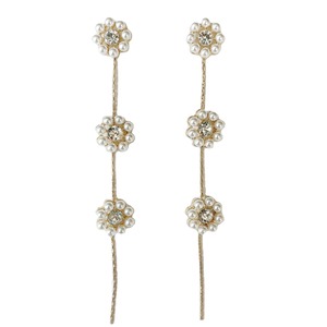 パール+ビジュー トリフラワー ラインドロップピアス ゴールド PR00168