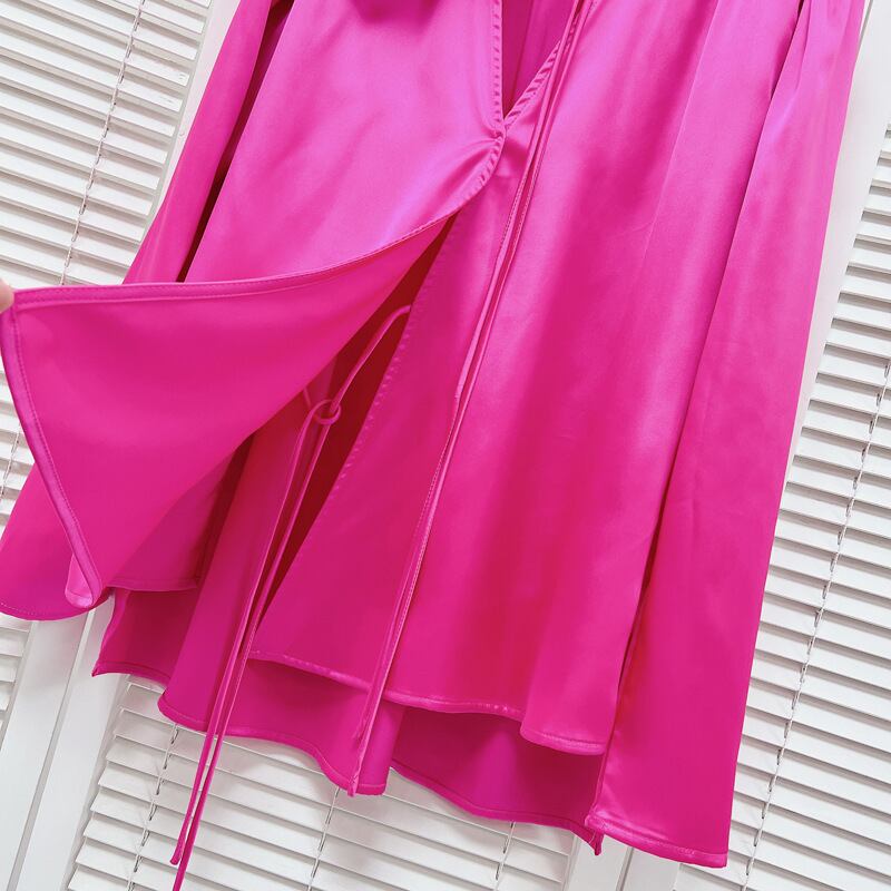 フラワーストリング Vネック サテントップス マゼンタピンク CS00092