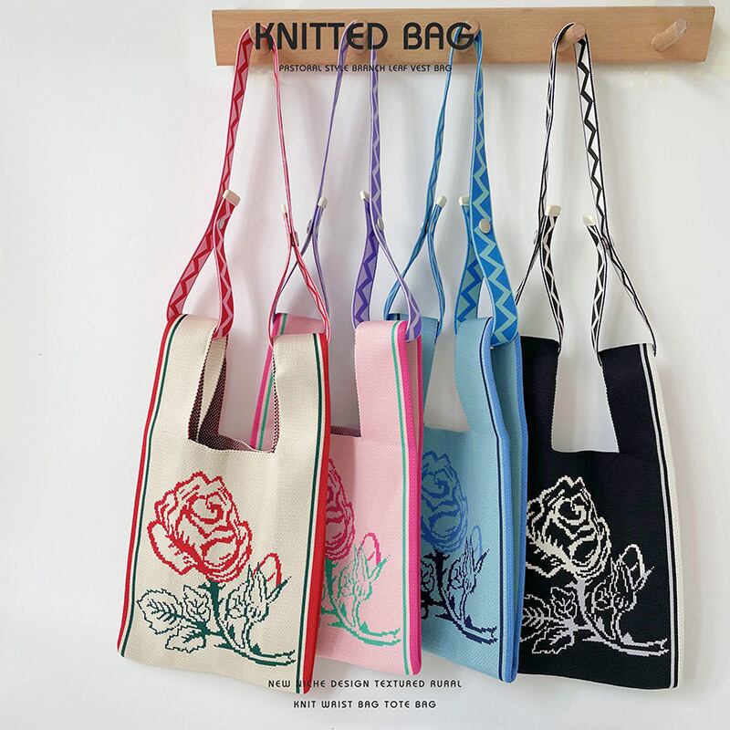 アンティーク調のバラをモチーフにしたニットバッグです。ロマンティックでフェミニンなデザインで、コーディネートのアクセントにおすすめです。スイートにも、エレガントな雰囲気にもなる、幅広いスタイリングができるアイテムです。軽く、シワにならず、小さくまとめられて旅行先などでも便利なバッグです。