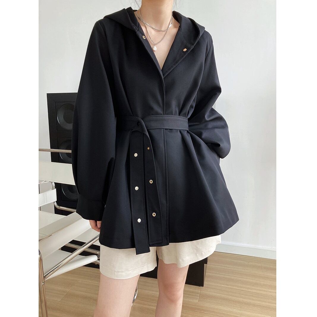 Aラインシルエットのミドル丈コートです。大きめのフードや、ケープのようなフェミニンなAラインで、女性らしいソフトな印象に仕上がります。付属のベルトでウエストマークをすると、シルエットがかわり、スタイリングの幅が広がります。