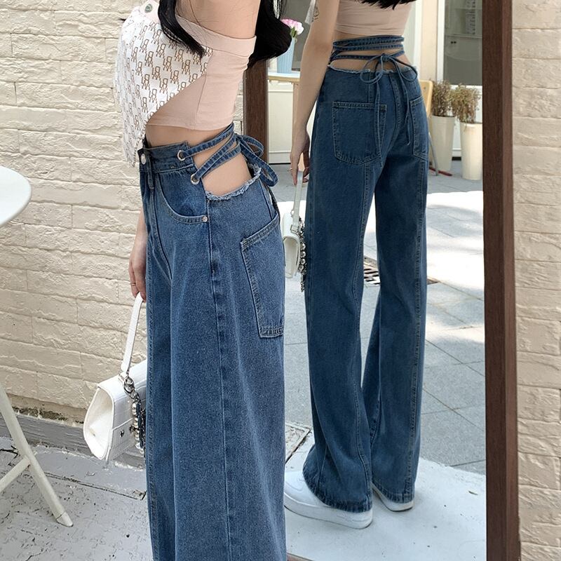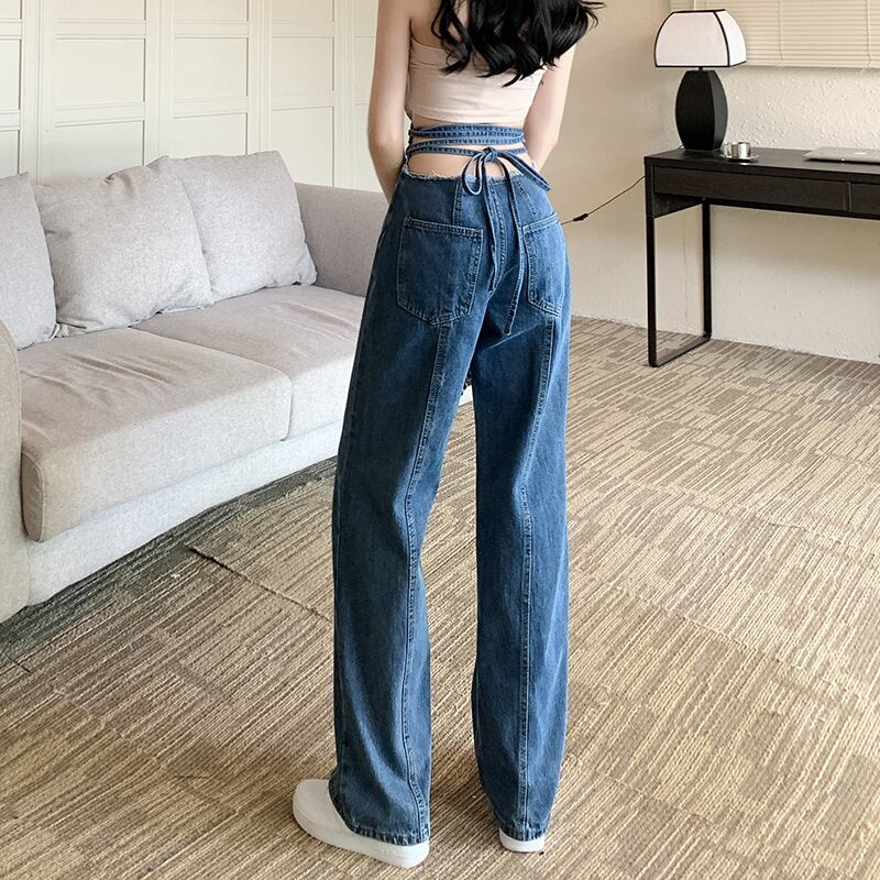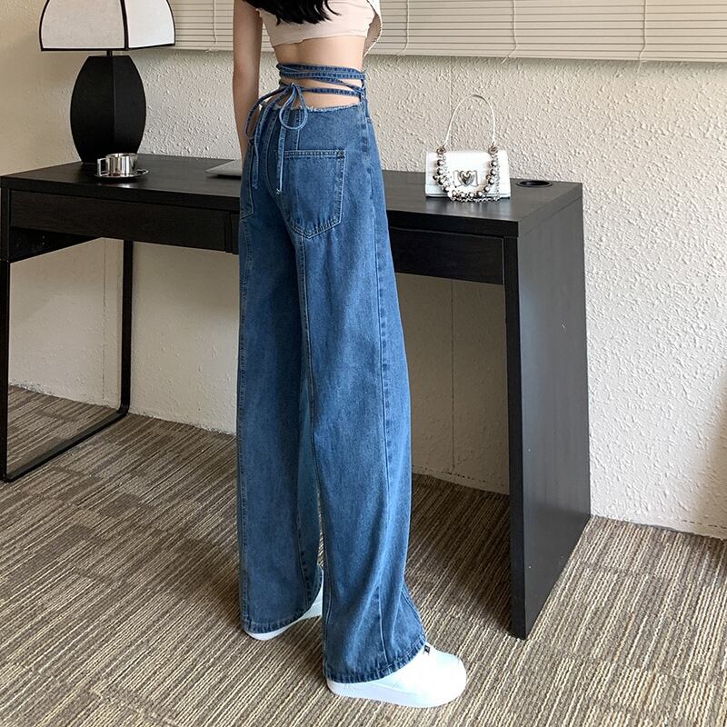 ウエストにダブルストリングをアレンジ、バックスタイルのレースアップがポイントのワイドレッグデニムパンツです。ワイドレッグで履きやすく、ウエストの美しいレースアップでスタイルアップも叶います。ストリングを結ぶ位置もアレンジ次第で雰囲気がかわります。