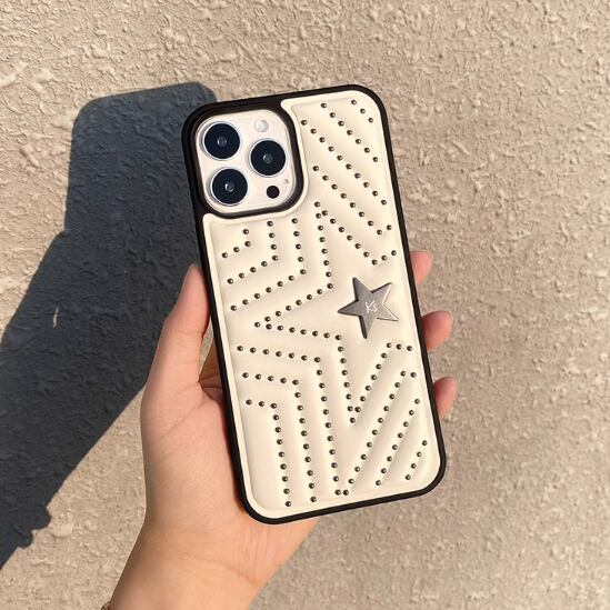 スターモチーフ リベット+キルティング iPhoneケース ホワイト TA00077