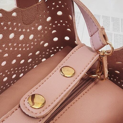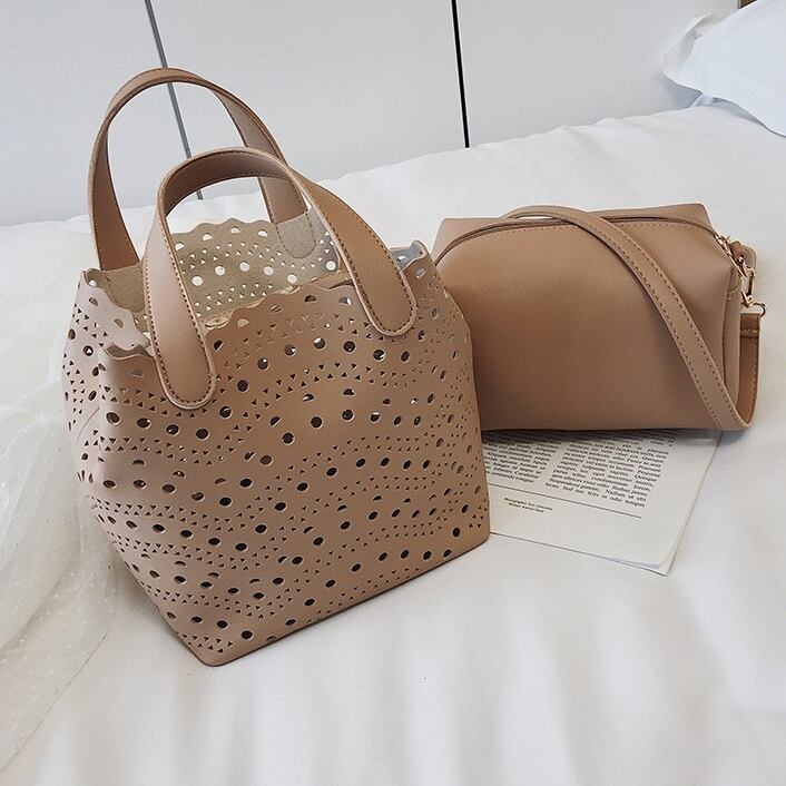 エコレザー パンチングレース トートバッグ+ショルダーバッグ ミルクティーブラウン BA00508