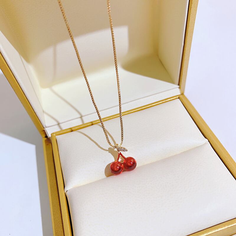 真っ赤なサクランボのチャームがキュートなネックレスです。葉っぱを飾るジルコニアもアクセントになっています。スイートなスタイルから、マニッシュやモードスタイルなど、幅広いコーディネートのキュートなアクセントにおすすめのネックレスです。