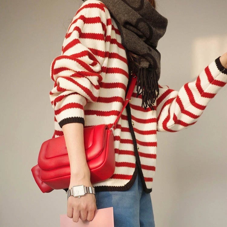 クルーネック ボーダーニットカーディガン アイボリー/レッド NI00285