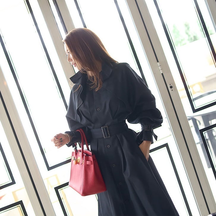 スタンドカラーをはじめエレガントなシルエットがポイントのトレンチコートです。袖やウエストの付属のストラップやベルトでアレンジすることで、お好きなシルエットが完成し、美人度がぐっと上がる、スタイリングが楽しめるユニークなデザインです。デニム、スニーカーなどカジュアルなコーデにもよく似合います。通勤用のコートにもおすすめです。