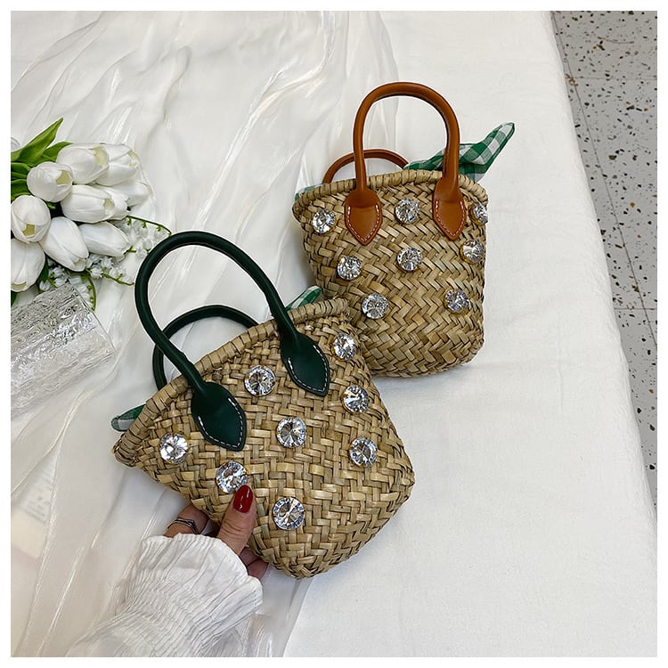 ビジューデコレーション ミニストローバッグ・かごバッグ・ポシェット グリーン BA00539