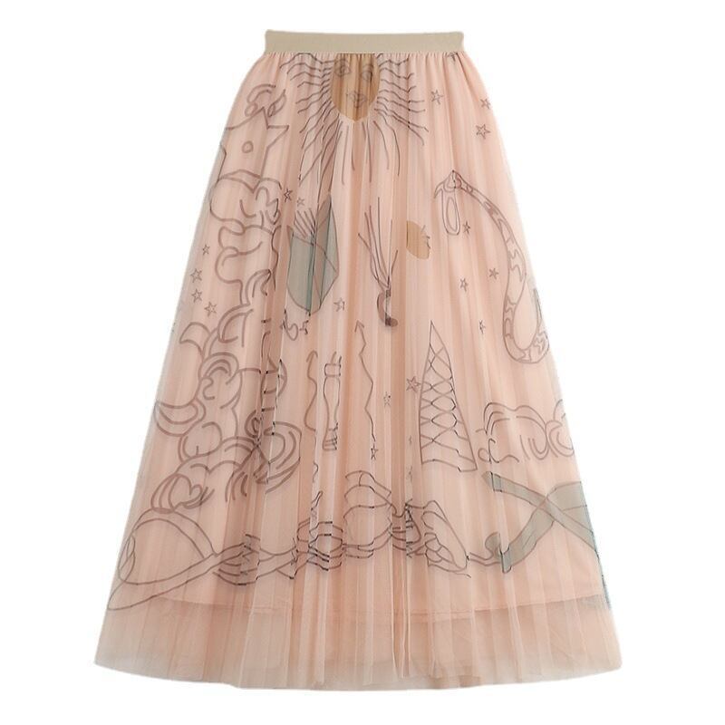グラフィティプリント チュールスカート ペールピンク SK00172