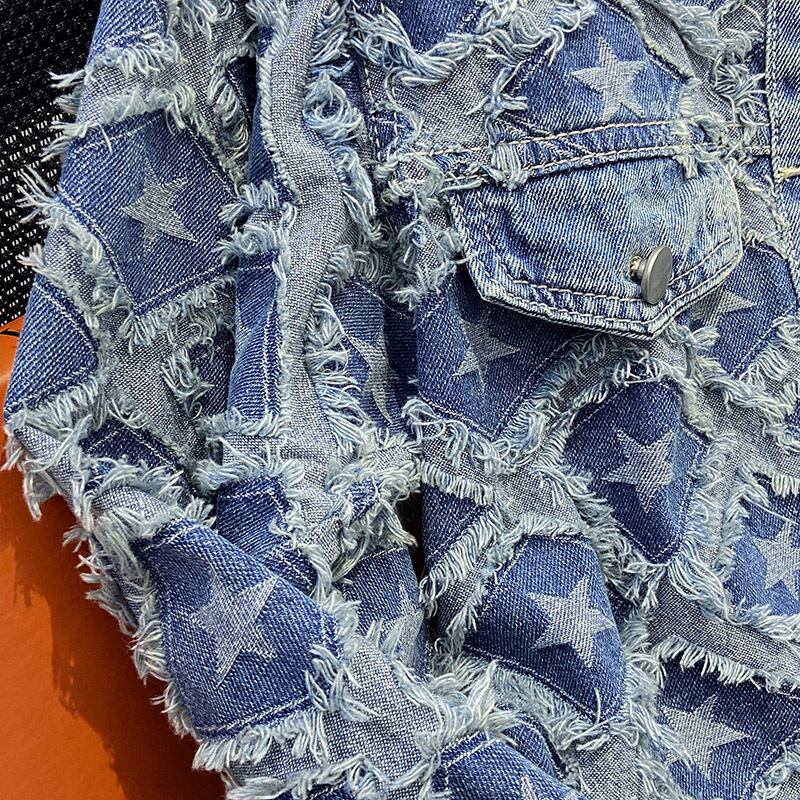 スターモチーフ シャギーアレンジ ノーカラーデニムジャケット CT00092