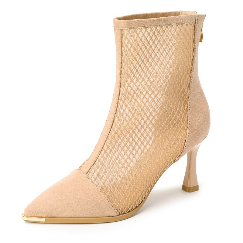 メタリックポインテッドトゥ メッシュコンビブーツ アプリコットベージュ BU00028