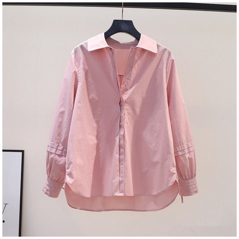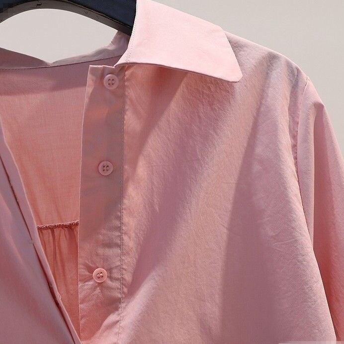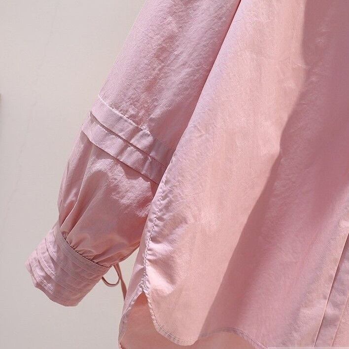 リボンプリーツスリーブ コットンシャツ ローズピンク BL00149