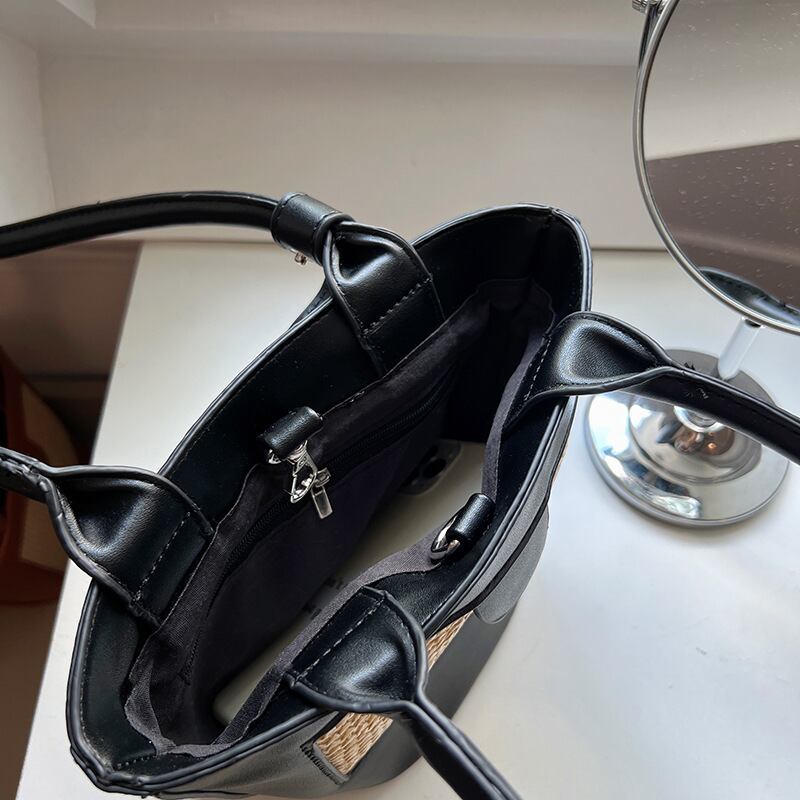 ストローパネル エコレザー ミニトートバッグ ブラック BA00551
