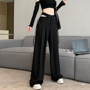 カットアウト+リボン ワイドレッグパンツ ブラック PT00056