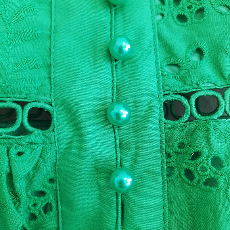 オールフレンチレースがエレガントなロングワンピースです。スタンドカラーや、フリルスリーブ、パール調のボタンなど、細部まで上品でエレガントなデザインです。様々なデザインのレースをミックスさせており、品のある肌見せが叶います。このワンピース1枚で存在感のあるスタイルが完成します。春夏のお出かけが楽しくなる、主役級のワンピースです。
