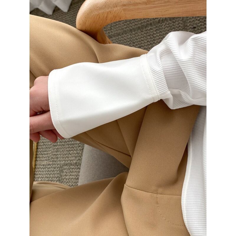 ベルスリーブ+ワイドスリット リブカットソー ホワイト CS00106