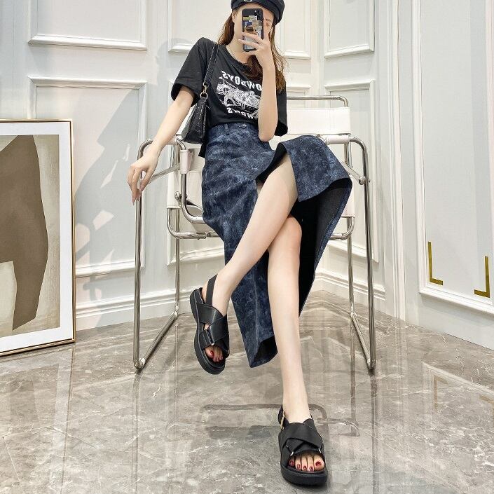 ワイドクロスベルト バックストラップ レザーサンダル ブラック SH00211