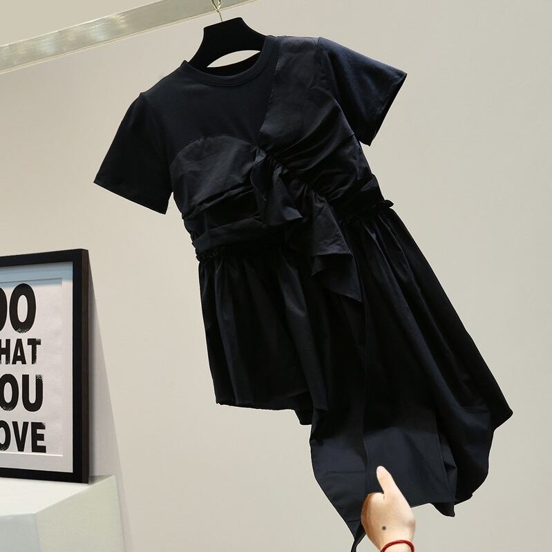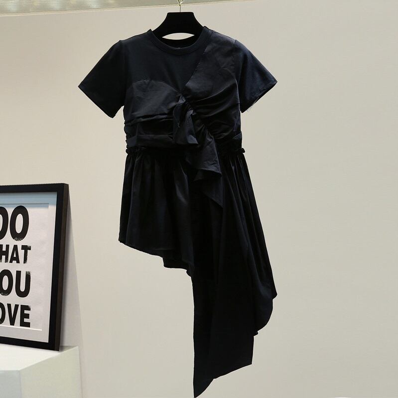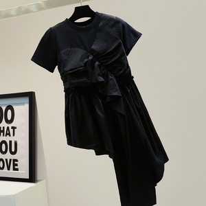 シャーリングリボン デコレーショントップス ブラック CS00109