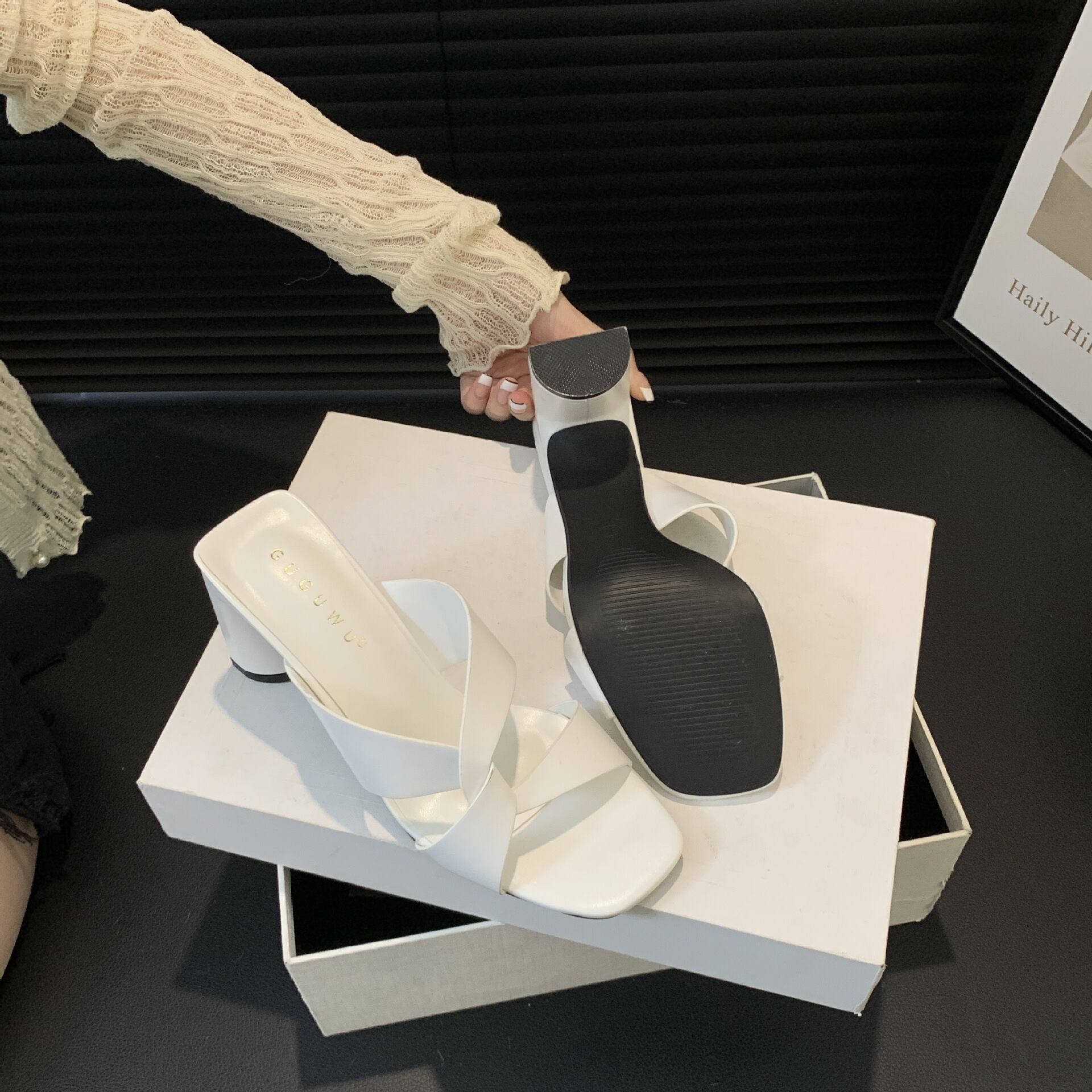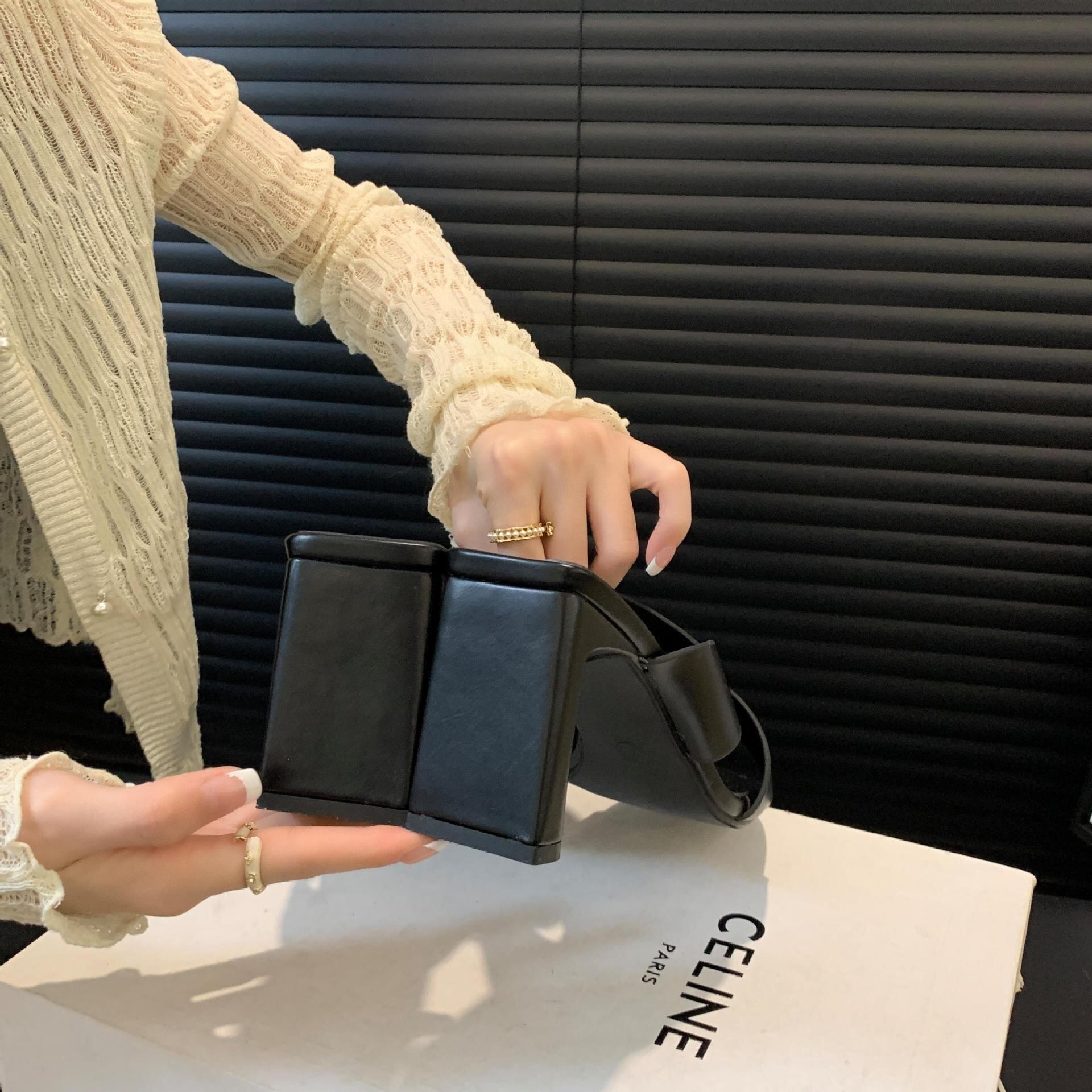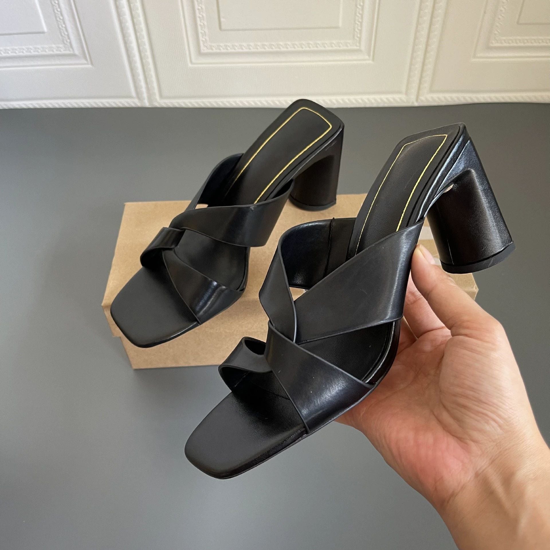 ツイストストラップ アシンメトリー ヒールサンダル ブラック SH00214